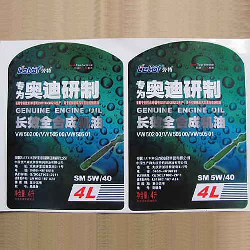 润滑油标签属于功能性油类产品标签,主要应用于发动机油、变速箱油、液压油、摩托车机油、工业润滑油、链条油等各种塑料瓶、金属罐包装。由于润滑油产品本身具有油性强、易污染、瓶体难粘贴的特点,对标签的防油、防刮、粘贴牢度和整体印刷质量提出了更高要求。
